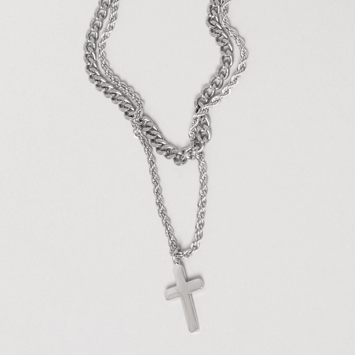 Гердан “Тwisted Cuban Cross” е двоен мъжки гердан. Герданът е изработен от 316L Premium неръждаема стомана. Това го прави изключително устойчив на външни фактори, като пот, вода, топлина без да променя своя цвят и да пуска петна.