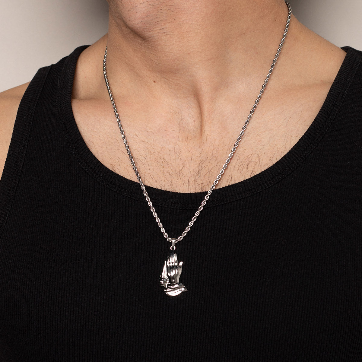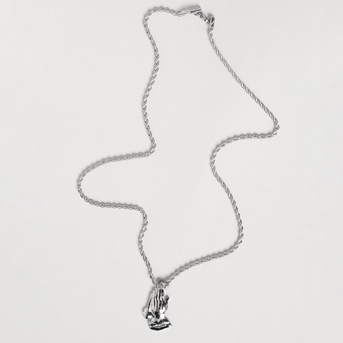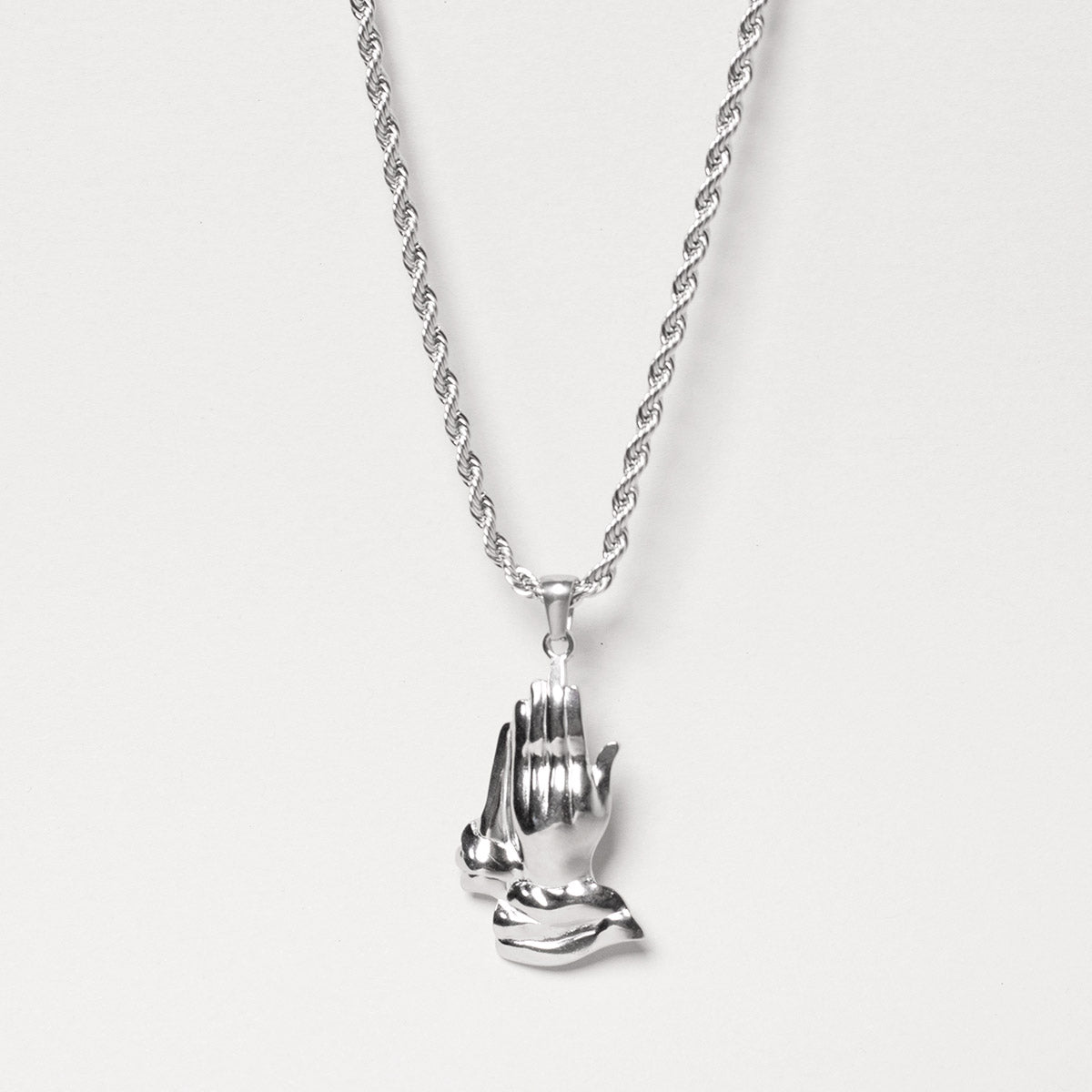 "Twisted Prayer" е мъжки гердан с висящ елемент молещи се ръце, изработен от 316L Premium неръждаема стомана. Това го прави изключително устойчив на външни фактори, като пот, вода, топлина без да променя своя цвят и да пуска петна.